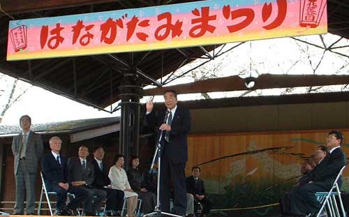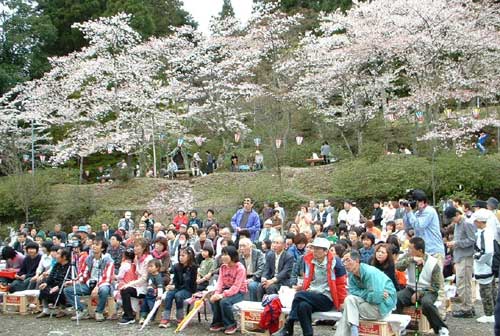 2002年4月7日午後1時半 打ち上げ花火の合図で開会式。司会進行を 昨年に引き続き私が勤めさせていただきました。