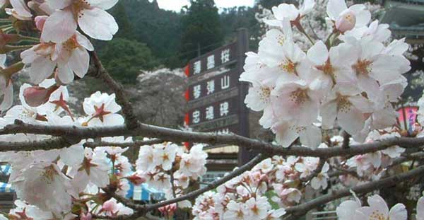 薄墨桜・琴弾山・忠魂碑への文字が/桜満開のはながたみまつり