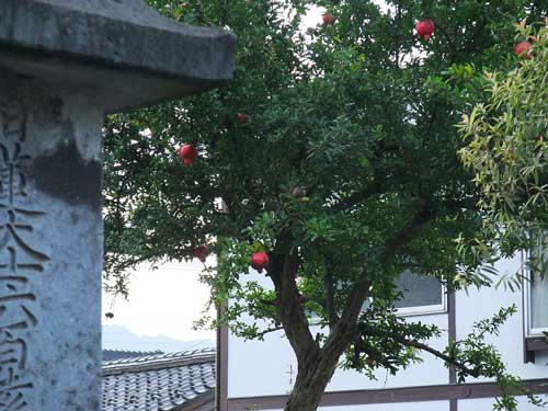 ざくろの赤い実を横目に