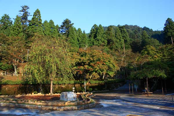 青空、公園正面、わずか紅葉
