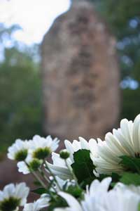 忠魂碑前に菊が供えられて