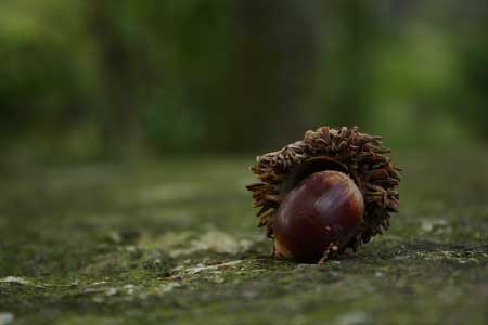 石の腰掛の上にどんぐり