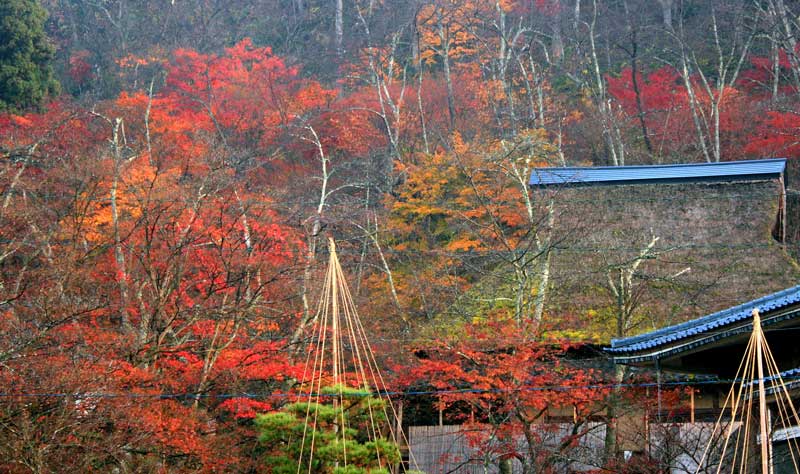 ふるさとの家に雪囲いが、雪吊りと合わせ雪国風景