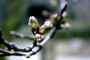 桜、蕾に少し色がつきだし