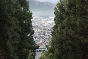 木々の間から垣間見る粟田部の町並み