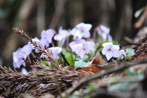 すみれがベンチに映って