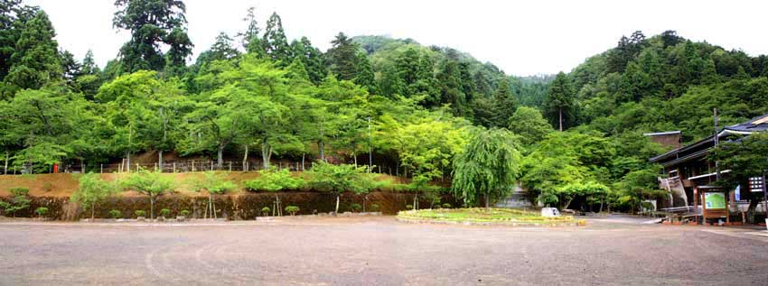小雨降る梅雨真っ只中能舞台を背に