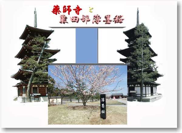 奈良薬師寺で粟田部薄墨桜の分け木が今満開に咲き誇っています。