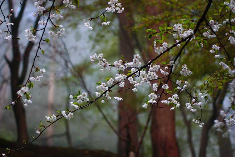 公園内の桜はとても綺麗だったなど、散り桜で白くなった山道を歩く