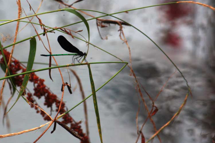 正式にはハグロトンボ、子供の頃からイトトンボと。今日は七夕、生憎の小雨、傘を差しながら。