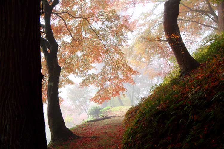 大きな木々や山肌の隙間から見えてくる紅葉がいい