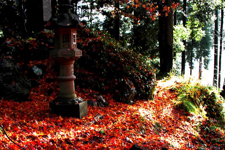 朝日が差し込み落葉が輝く
