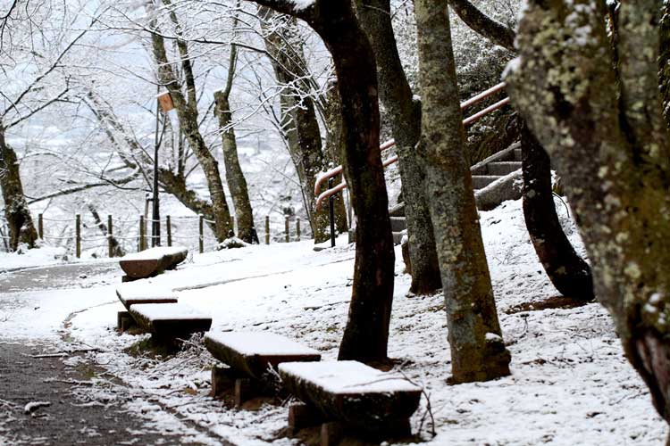 遊歩道にうっすらと積雪