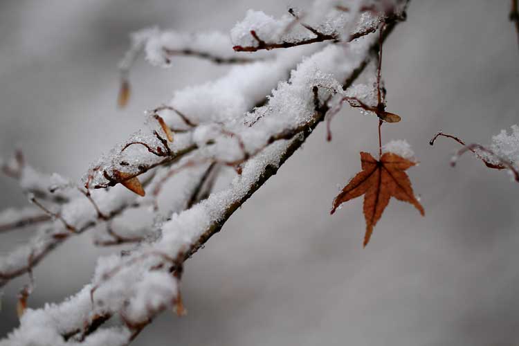 花筐公園もみじ葉と雪