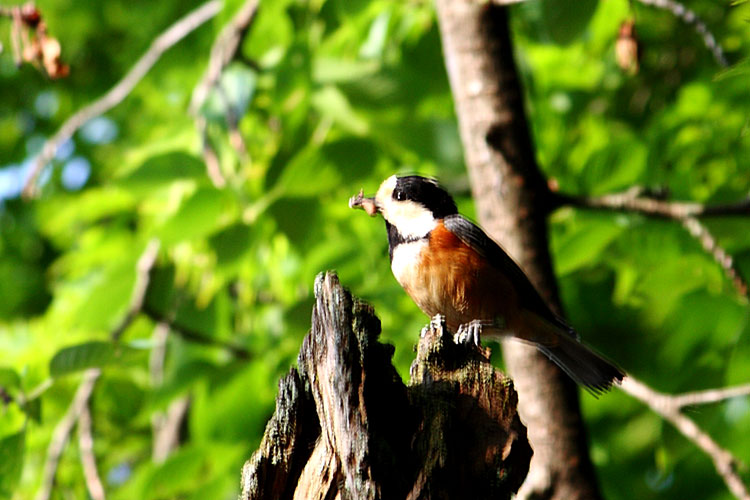 森林の害虫を食べる益鳥、とても愛らしい。今、口にくわえて