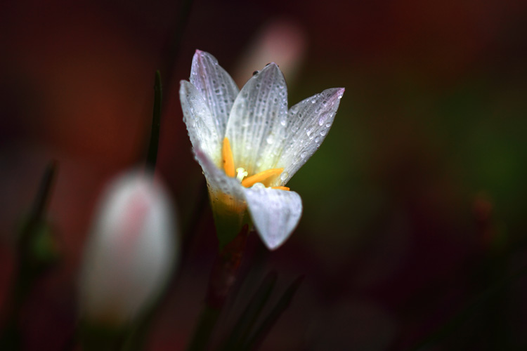 雨の中、透き通るような白が映える、タマスダレ