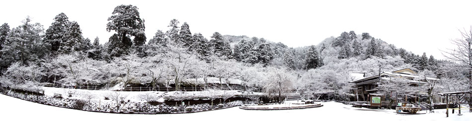 桜の枝が雪で真っ白に