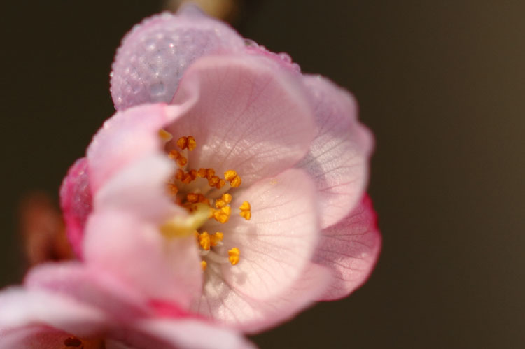 凍りつくような空気の中、天気も良いせいか、寒桜が色彩鮮やかに