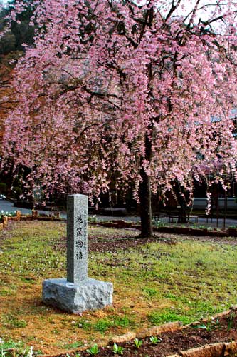 「花筐物語」の記念碑、春の嵐・メイストームに負けず、がんばり留まった桜達に感動