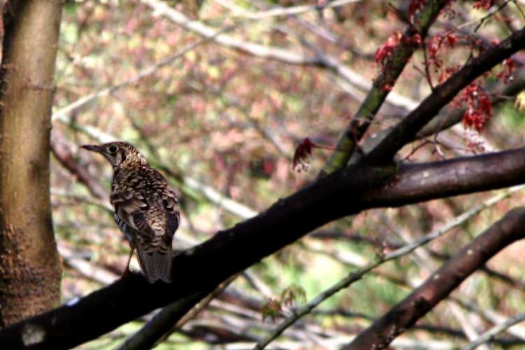 そうとう望遠の距離、野鳥の鳴き声を聞くと何だかホッと、春もみじ紅葉の始まる木の枝で一服
