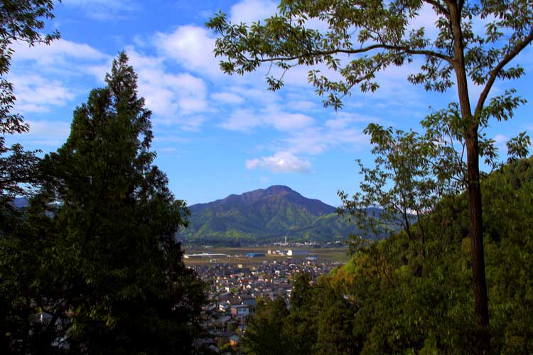 青空に優しそうな雲、新緑に映える越前富士に足を止める、憲法記念日