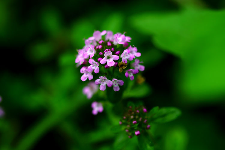 お椀をふせたような周りに小花、背丈も10〜15センチほどと大変小さい、本日みどりの日にちなみ背景緑を強調