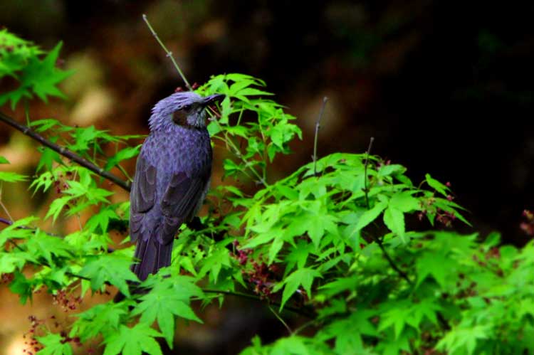 もみじ青葉とヒヨドリ、いい顔立ち、こどもの日連休真っ盛り