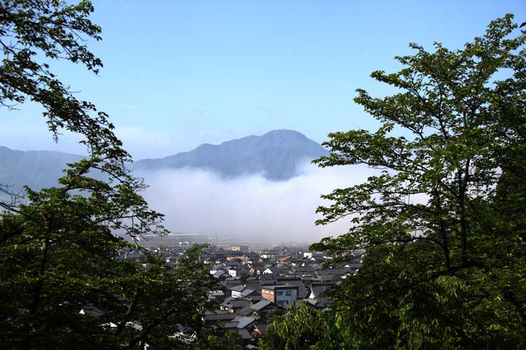 先ほどまで公園も霧に、越前富士ふもとも霧、刻一刻と変化していく風景
