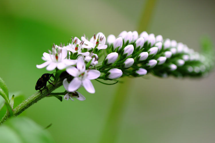 蕾の頃から開花を心待ちに、昆虫も同じ気持ちに見える