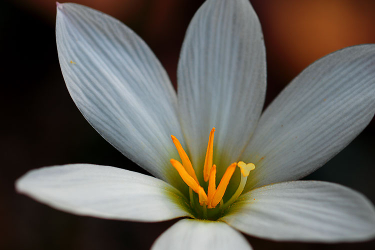 清楚感溢れる真っ白な花、ペルー原産の玉簾、黄色のおしべがアクセント