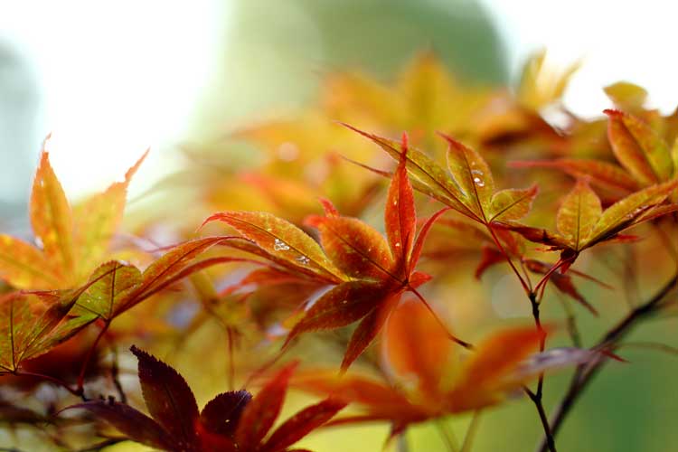 早朝より雨、年間通して色づいた紅葉木もある、越前市市長選挙投票日