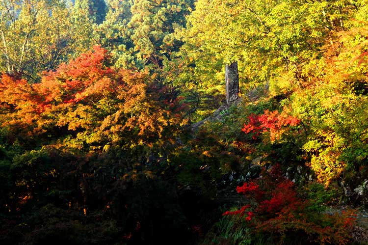 真横から遠望した忠魂碑、大変急な斜面の岩肌に建立されていることがわかる