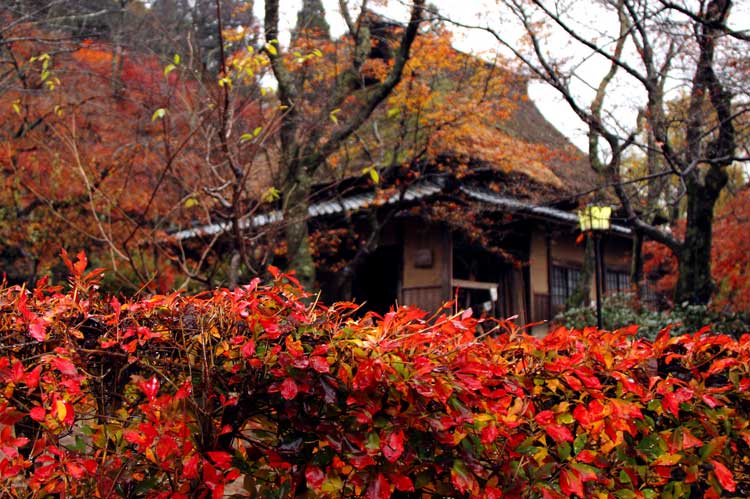 ふるさとの家とツツジ紅葉