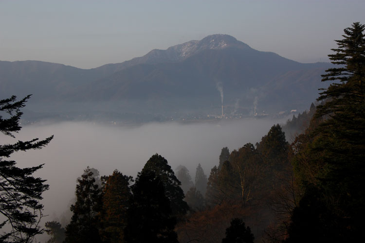越前富士のふもとは霧一色、今日一日よい天気になりそう