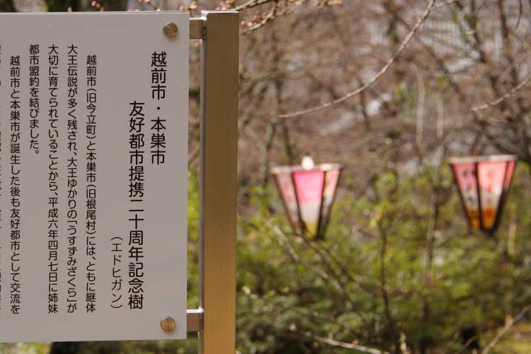 はながたみまつりに合わせての記念板、いいことが記されていますから足を運ばれて、ボンボリも賑やかに