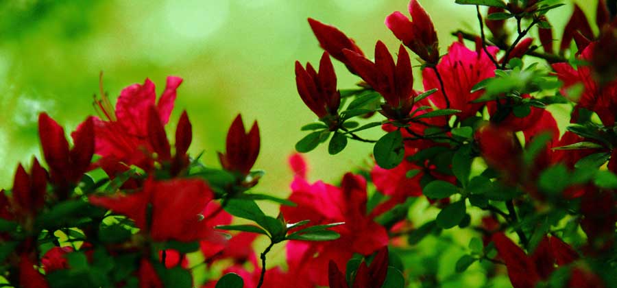 気品を感じるツツジ、緑との対比が美しい