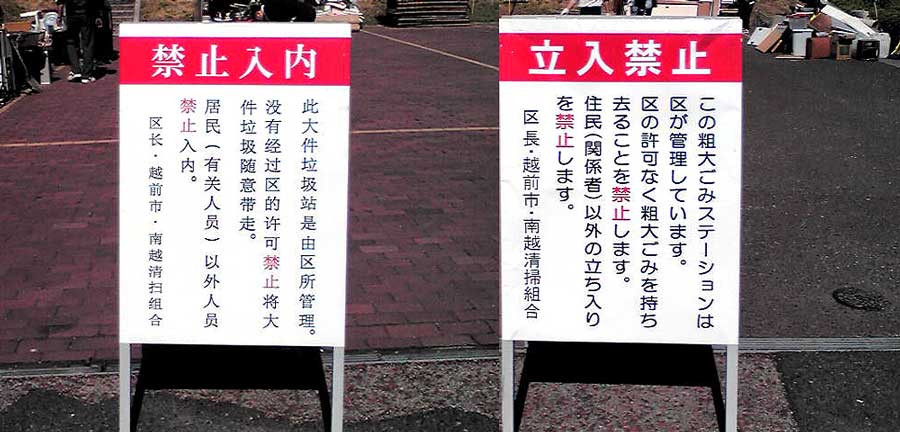 佐山姫公園で粗大ゴミ回収の日、初めて外国語の看板が立つ