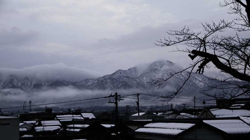 この一年お世話になり、ありがとうございました、たなびく朝霧に包まれる越前富士の雄姿