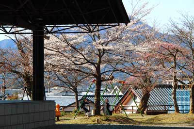 根尾分木山桜満開とブランコ