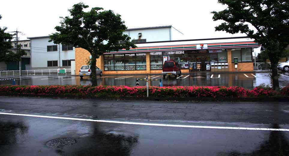 粟田部町内道路脇にたくさんのサツキ、セブンイレブン前、サンデイ・モーニング