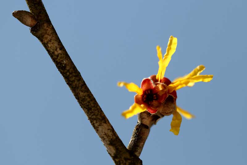 年配のご夫婦も混じって話しに花が咲く。ところで植物園で咲いてる花は真赤な椿の他はマンサク、それも豆粒ほど。まだ積雪のある中、見つけたときは感動。学芸員の方から花の名前を教えてもらったり、職員の方達と大変なごやかなひと時を過ごさせていただき感謝。ここで一番好きな休憩所、それに温室ではサボテンやランが咲きと青空の広がる小春日和を満喫。この植物園は越前町立らしい、あまりに立派なので県立とばかり。帰り駐車場で、滋賀県からの家族連れに、マンサクを見逃さないよう伝えたが、さて見つけられたでしょうか。