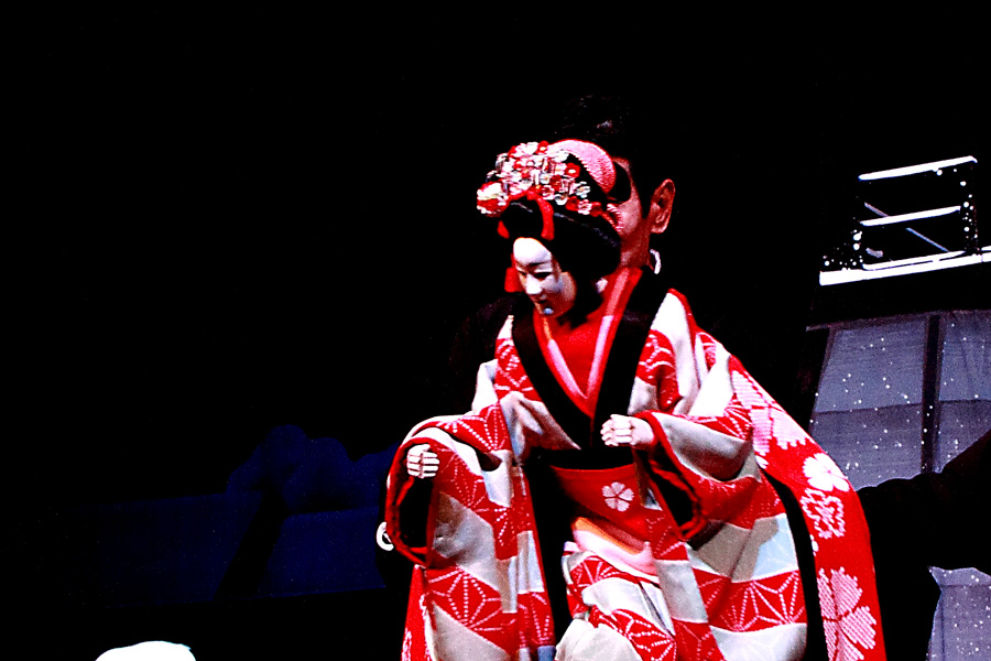 「伊達娘恋緋鹿子・火の見櫓の段」というと何だか仰々しいが、「八百屋お七」と聞けば知らない人はいない。あらすじの説明もあったが、以前から聞いていたのとは少し違っていた。お七は火付けはしておらず、番所の入り口を開けさせる為、半鐘を鳴らすというものであった。三味線を自在にクルクル回したり、会場いっぱいの人に大きな声で浄瑠璃の一節を謡わせたり、果ては、観客に実際にステージで人形を操らせるなど、大変楽しく喝采。