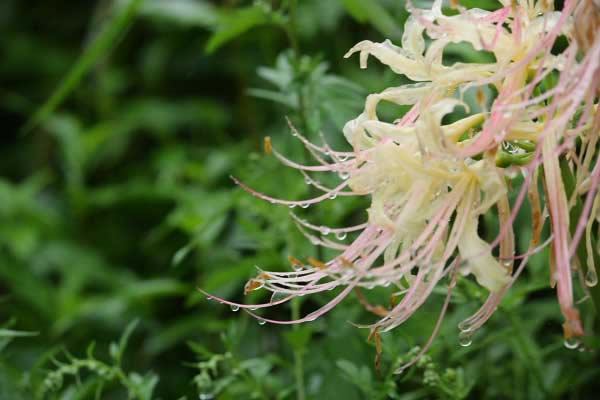 水滴がしたたり落ちる彼岸花