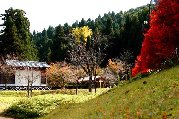 蔵をイメージさせる建物と紅葉がマッチ