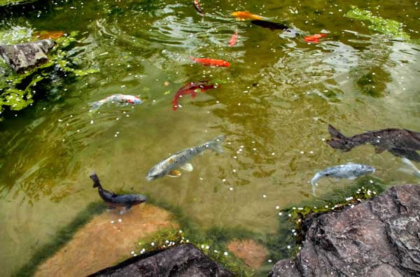 池に大きな鯉が、お世話されている方からいろいろお聞きする