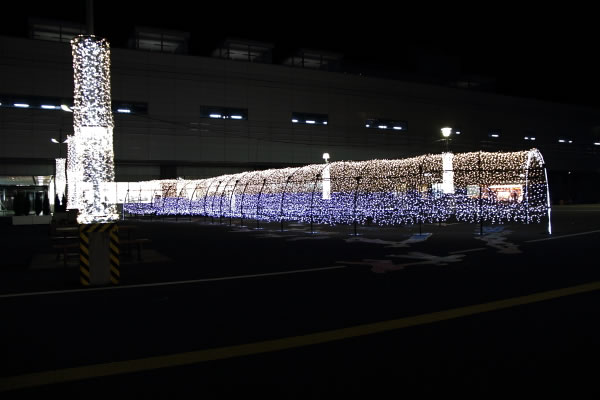 福井駅前、長い電飾のトンネル・すごい数の電球