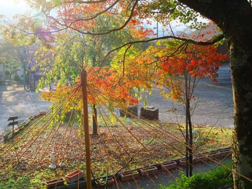 早い紅葉も、あちこち見かけるように、全体的にはまだ、雪吊り風景も出現