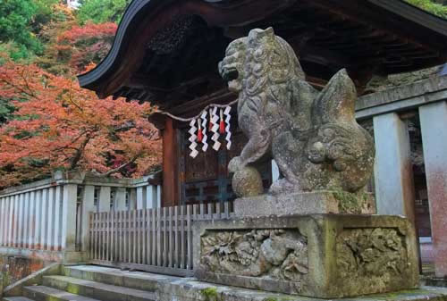 立派な狛犬と紅葉