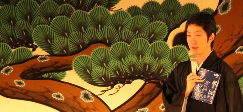 花筐薪能番組表を手に、萬斎さんの