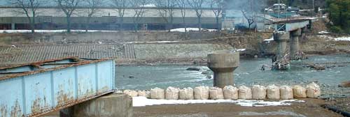一乗谷朝倉氏遺跡付近の足羽川では、災害復旧工事がいたるところで始まっていました。 「全国からのボランティアのみなさん、炎天下の中のたいへんな作業ありがとうございました。」 の立て看板からも、そのものすごさが伝わってきます。